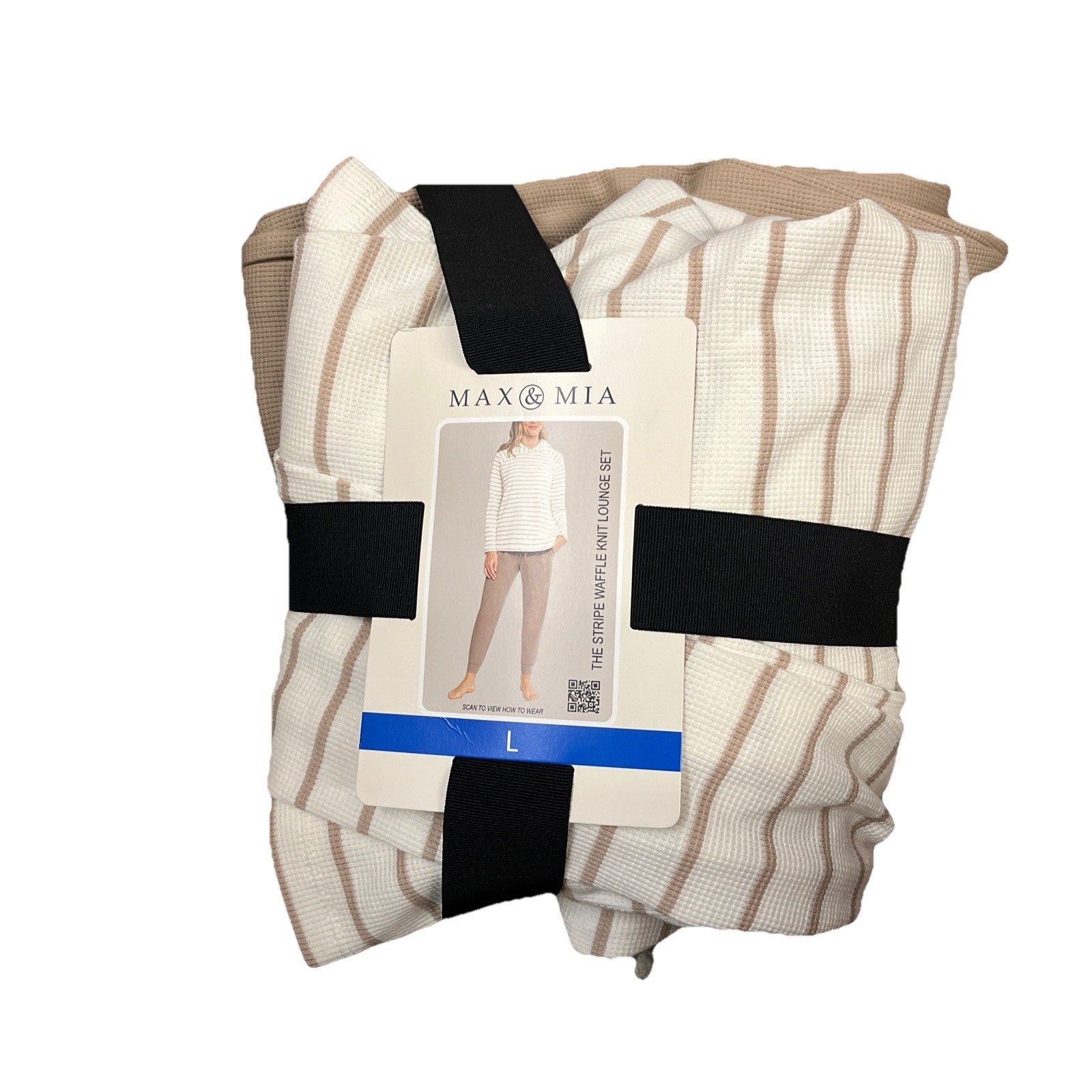 Max & Mia Women's 2 Piece Stripe Waffle Knit Lounge Set, Hoodie and Jogger Toast 1815615