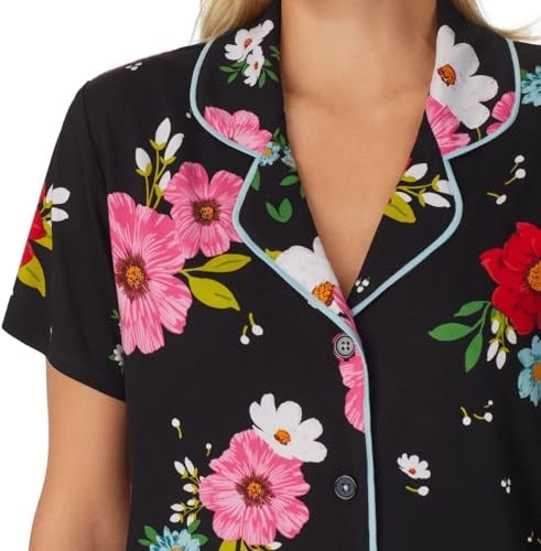 Room Service Womens 2-Piece Lightweight Short Sleeve Notch Collar Crop Pants Pajama Set(1685077)