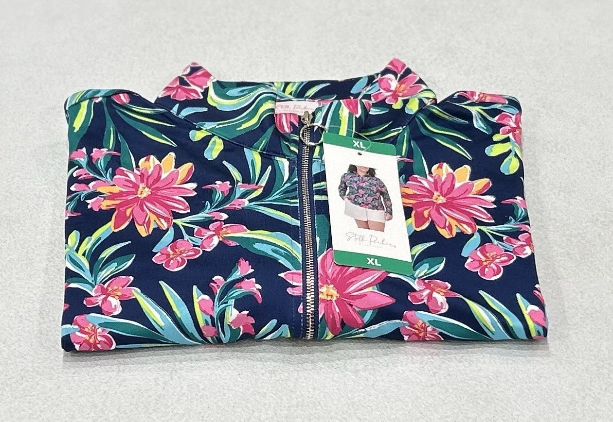 Stella Parker Women's Quarter Zip Athletic Long Sleeve Shirt, Navy, Size XL 1799969