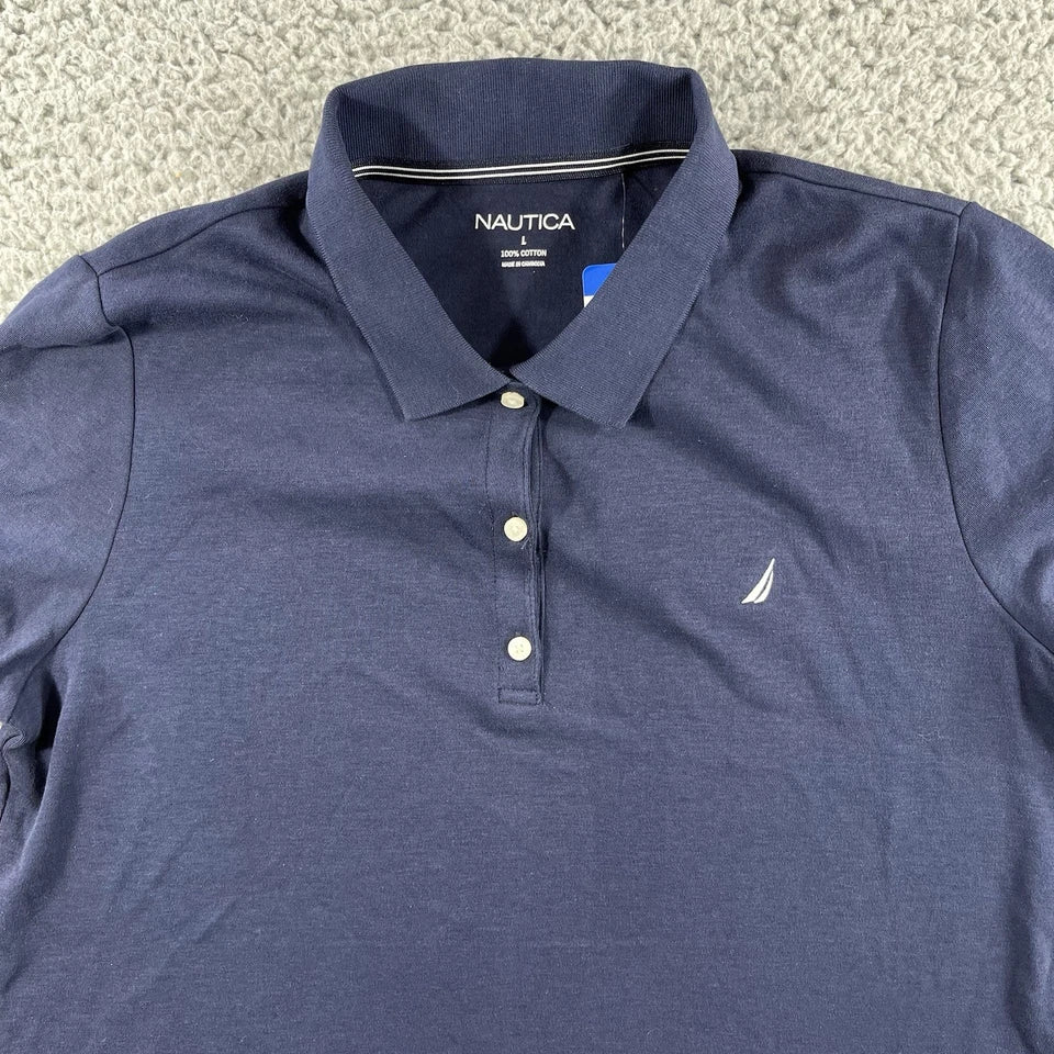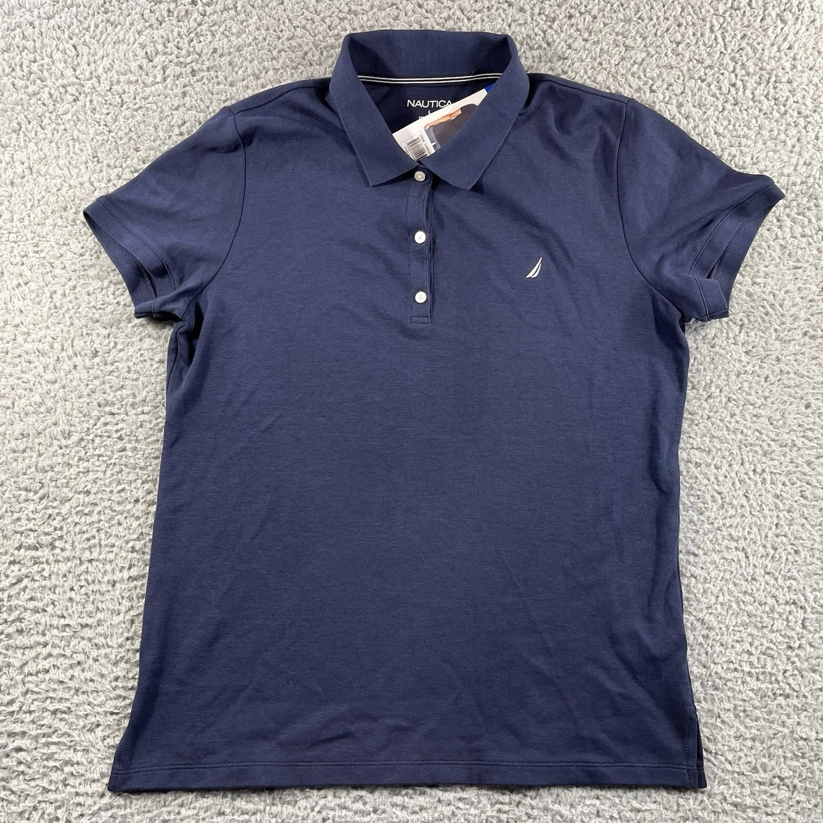 WOMENS LARGE NAVY BLUE SHORT SLEEVE COTTON NWT NEW COLLARED (1669206)