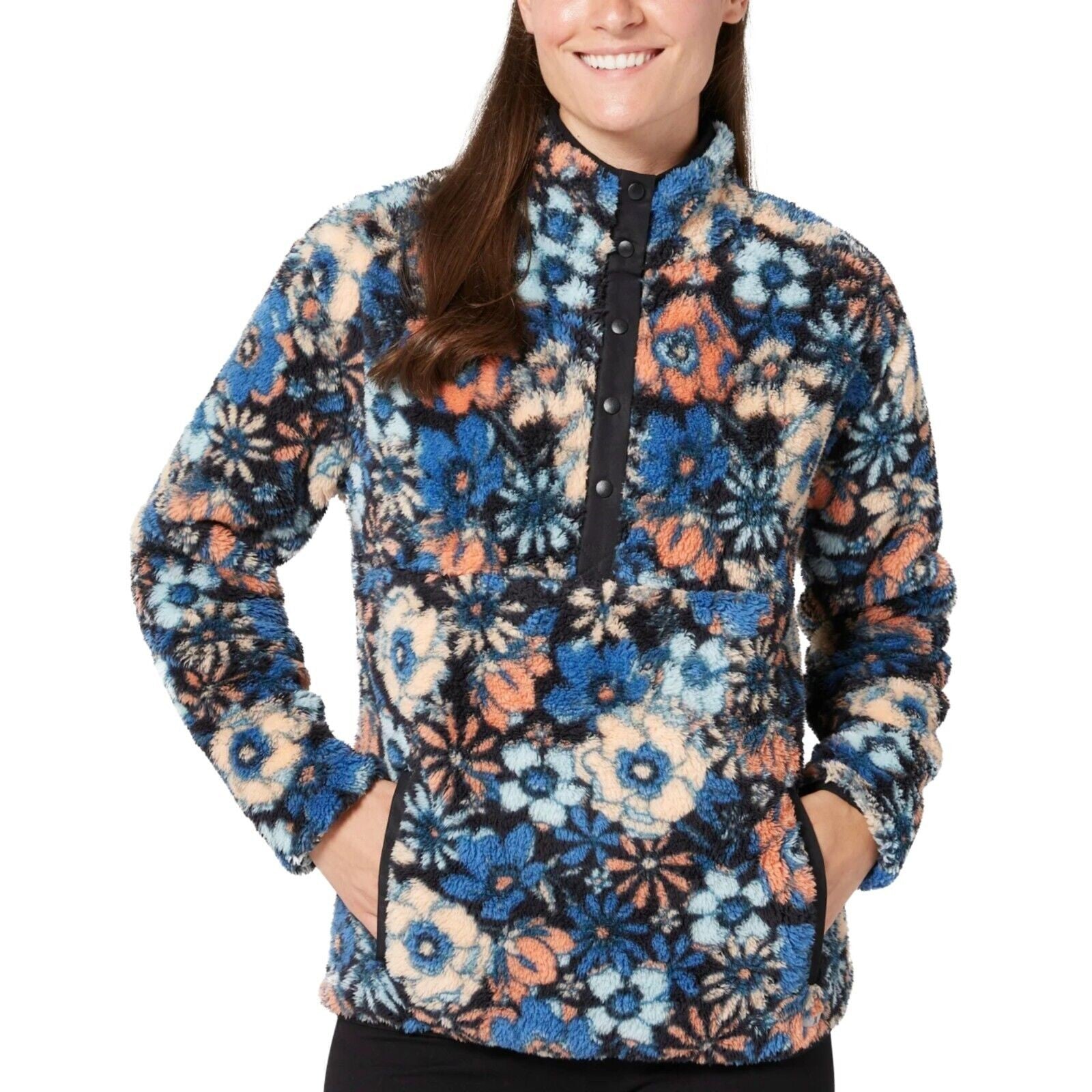 WT Hurley Women's Snap Super Soft Plush Fleece Sweatshirt Pullover Top (1732537)